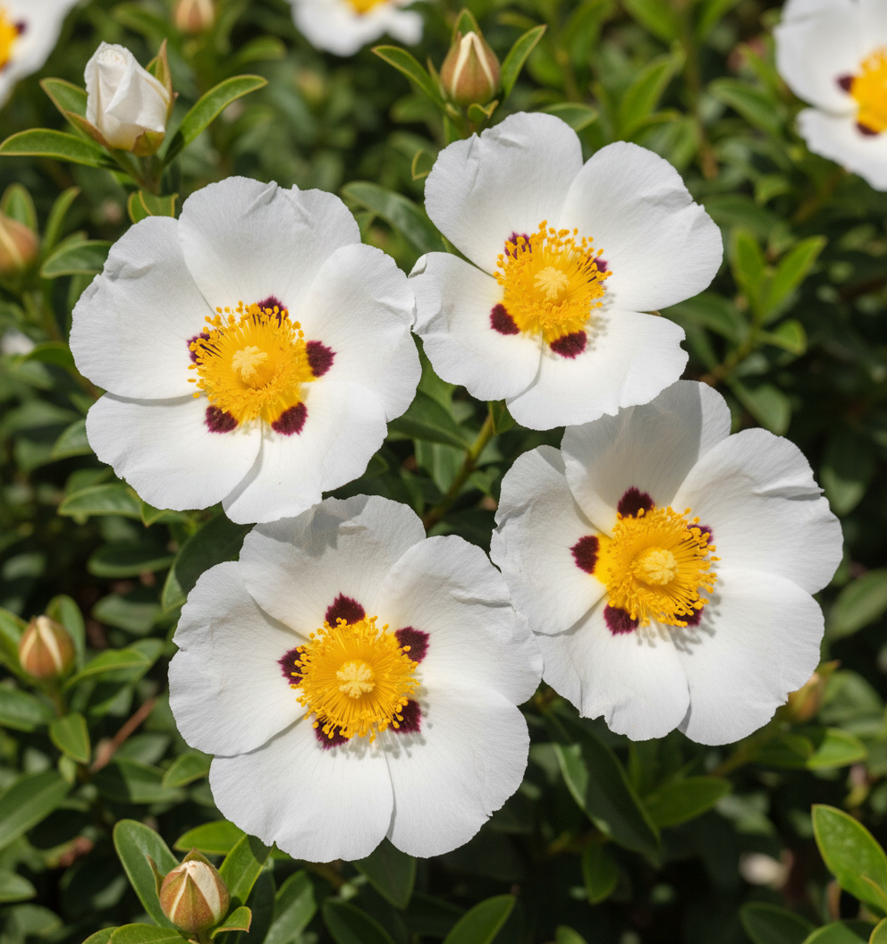 Botanical Name: Cistus ladanifer (incl. forms with/without maroon blotches)