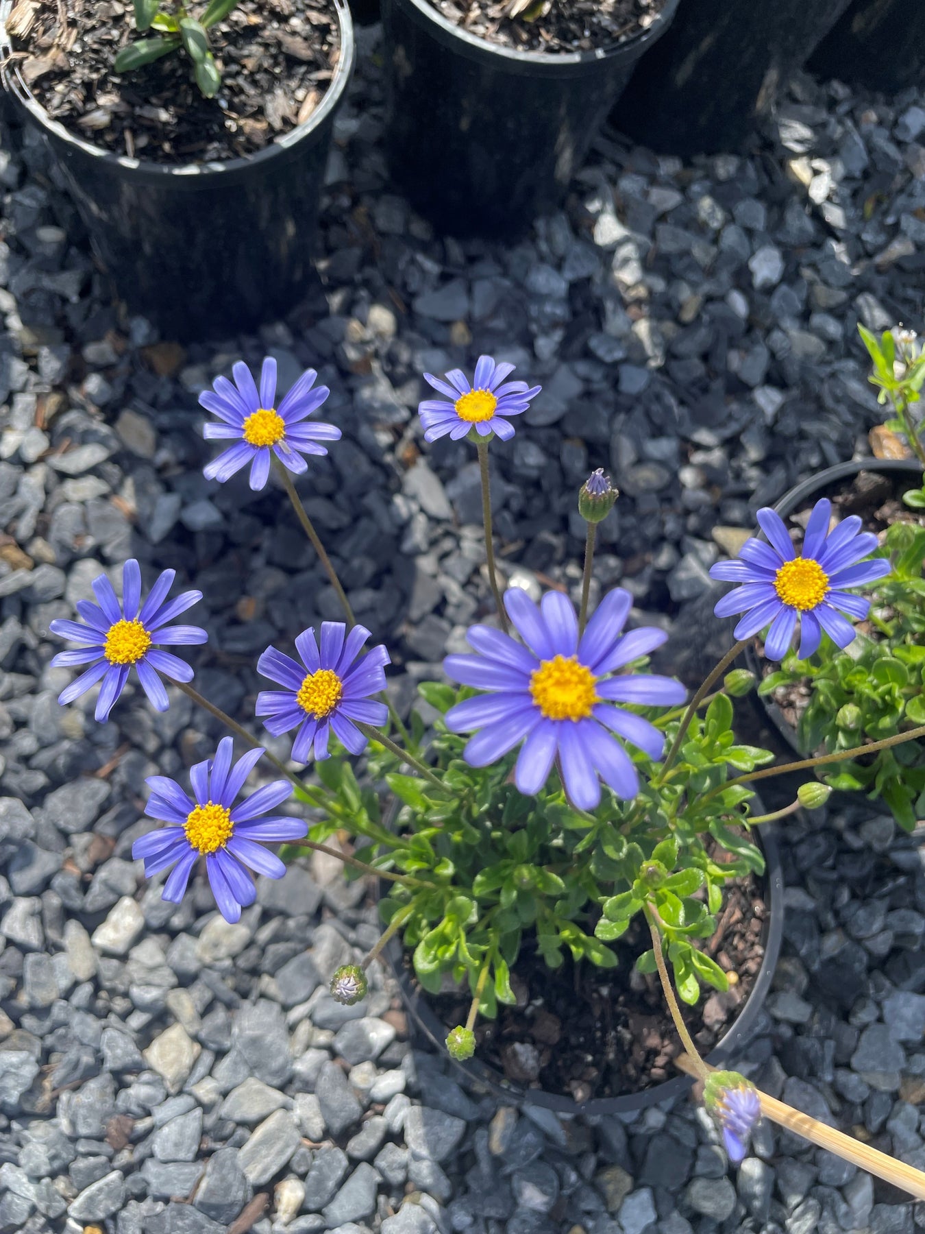 Cheerful, true-blue daisies for months, tough in Adelaide heat, and easy to keep tidy—perfect for bright borders, rockeries and pots with modest water needs.