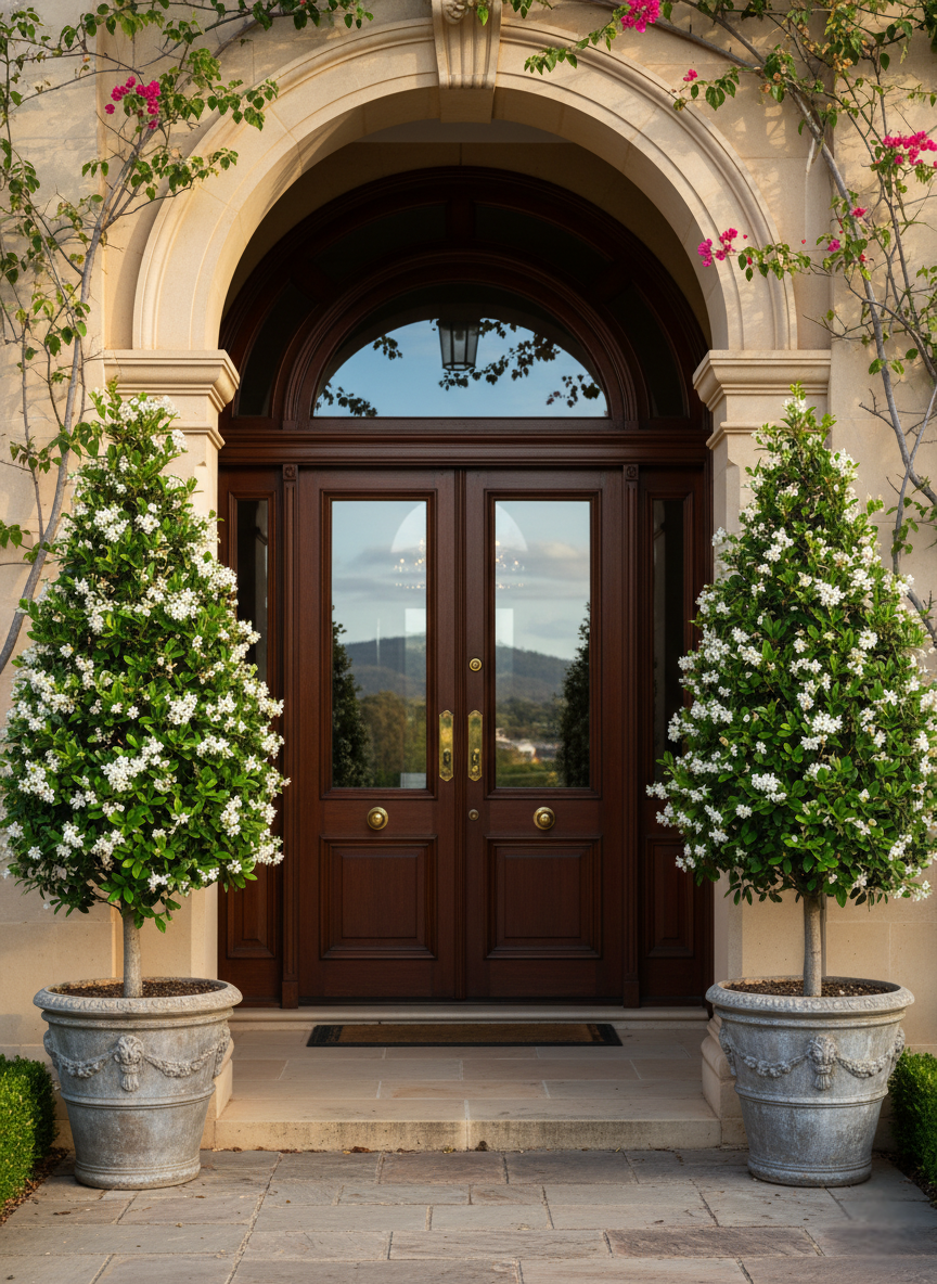Star Jasmine clipped into a sleek, fragrant cone gives instant elegance for Adelaide gardens. Glossy leaves bronze to burgundy in winter, then flush fresh green as weather warms. In late spring–summer (and often again in early autumn), masses of pure white, starry blooms release a head-turning perfume, perfect for entries, patios and statement pots.